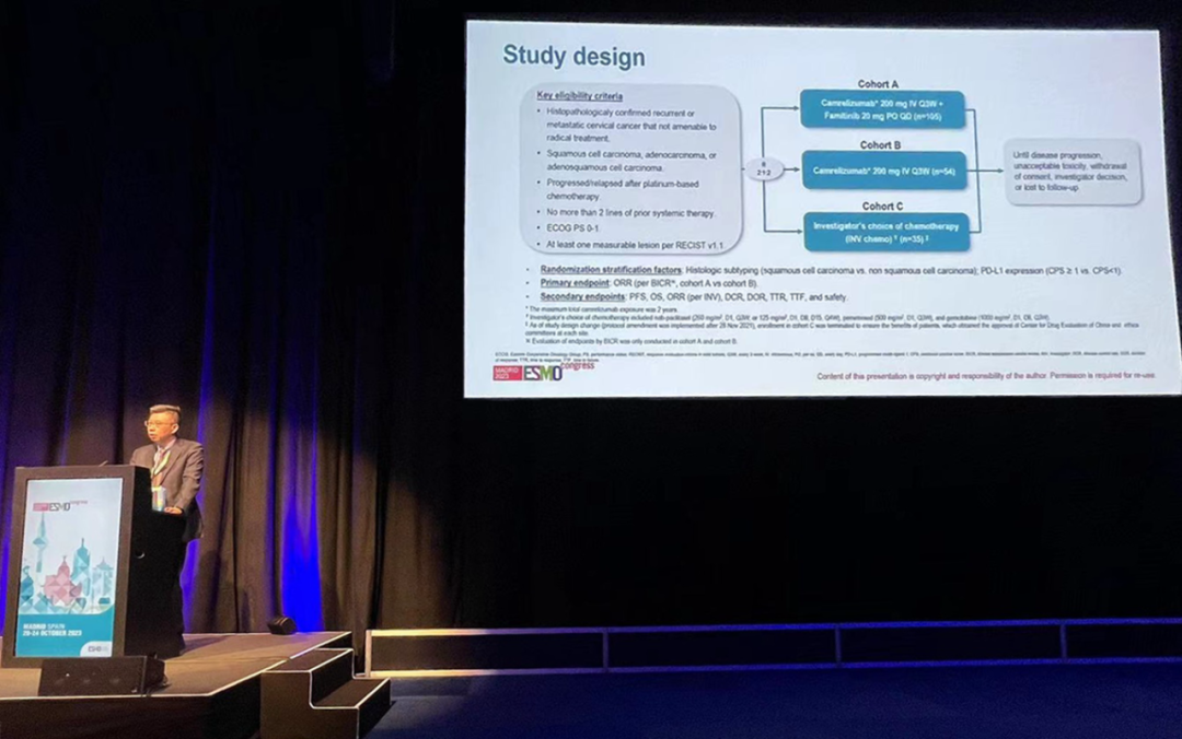 有望为宫颈癌患者带来治疗新选择10月22日,bifa·必发医药创新药卡瑞利珠单抗联合法米替尼对比卡瑞利珠单抗单药或研究者选择的化疗治疗复发转移性宫颈癌随机、开放、对照、多中心的Ⅱ期临床研究(SHR-1210-Ⅱ-217) 亮相2023 ESMO大会简短口头报告现场3。该研究由复旦大学附属肿瘤医院吴小华教授团队开展,吴小华教授在现场公布了该重磅研究进展。研究结果显示,在既往以铂为基础化疗失败后复发或转移性宫颈癌患者中,与单独使用卡瑞利珠单抗或研究者选择的化疗相比,卡瑞利珠单抗联合法米替尼显著提高了抗肿瘤活性,安全性可控,有望为晚期宫颈癌患者提供新的治疗选择。